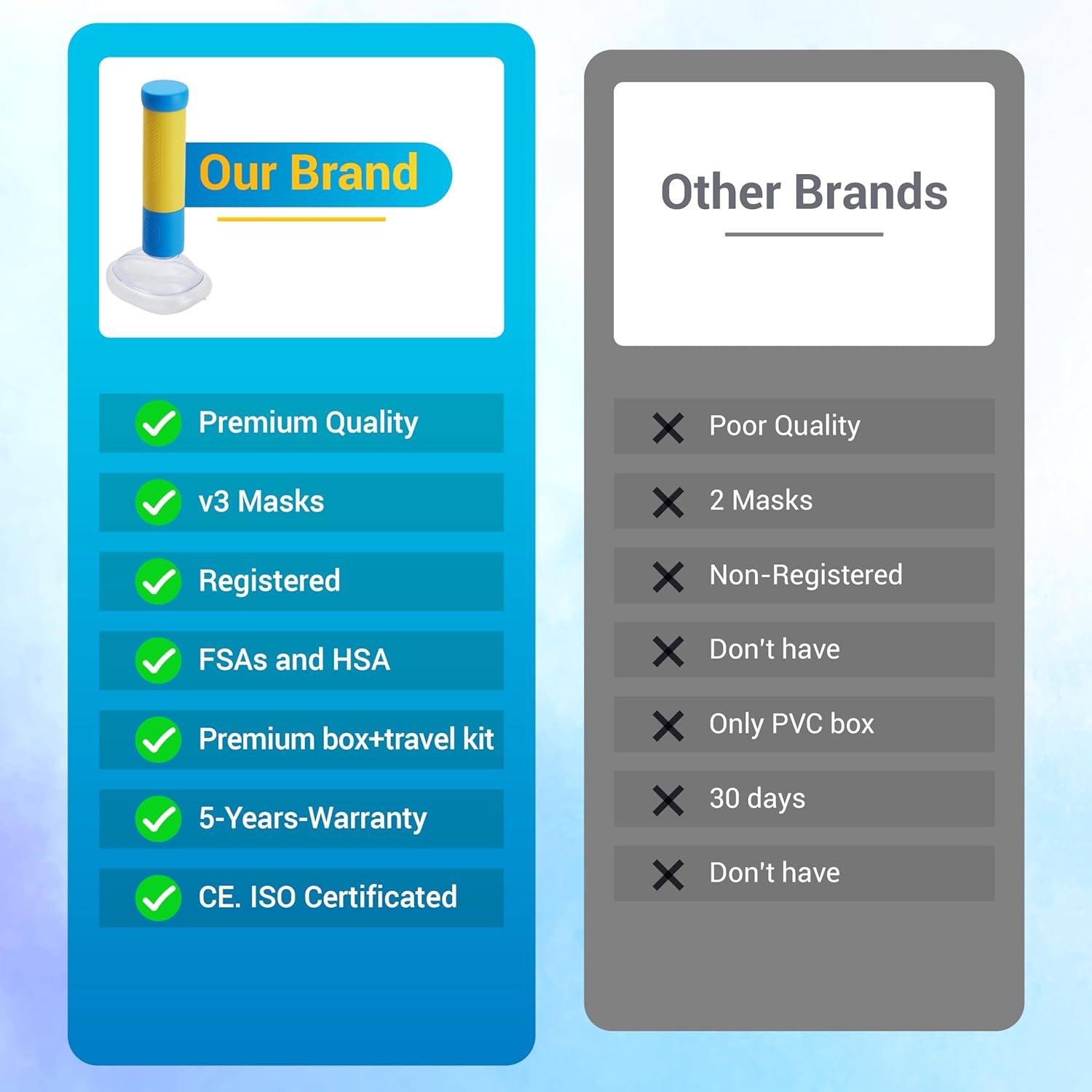- One-Way Valve Technology: Our unique one-way valve creates a powerful suction seal instantly. This provides a prompt and effective solution for airway clearance compared to traditional methods
